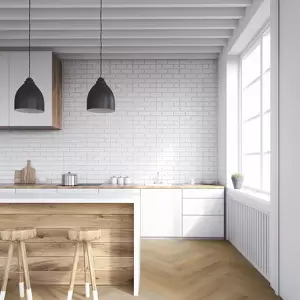 The Aspecta Elemental XL plank has an innovative, hard wearing Duraspect™ finish which combines the feeling of wood with the advantages of luxury vinyl. The ‘In-Register’ embossing provides a unique and realistic design with minimal pattern repetition. Planks are available in both 2.5mm and 5.0mm thickness. The Herringbone or Chevron patterns are stocked in the colour Bolsena and are available in 2.5mm only. The dramatic Elemental Chevron design offers a bold, modern twist on the classical Herringbone look. With diagonal ends, the Chevron planks create a striking V-shape design while the traditional Herringbone adds a sense of luxury.